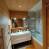 A bathroom with a washing machine.
