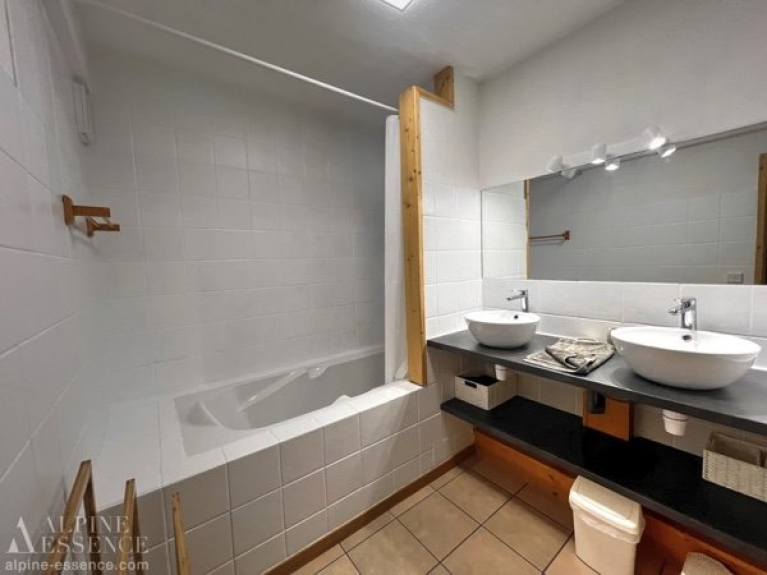 Downstairs you will find a further 3 twin bedrooms, 1 bathroom with bath and shower over and sink, 1 shower room with sink and a separate toilet. There is a laundry room with washing machine and dryer plus access out to the South facing terrace and to the piste.
