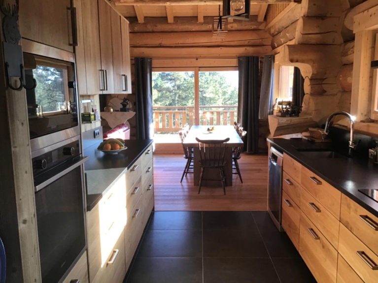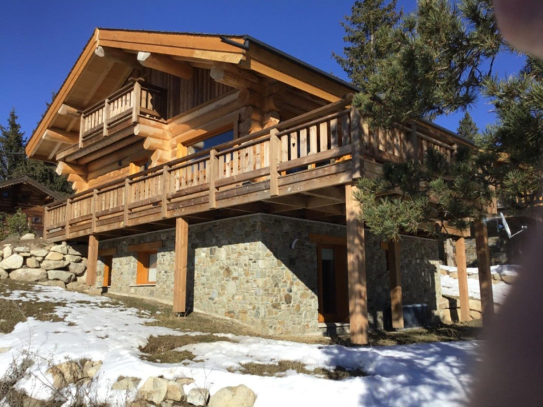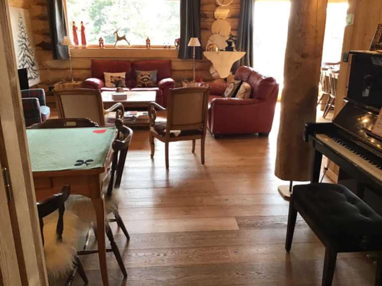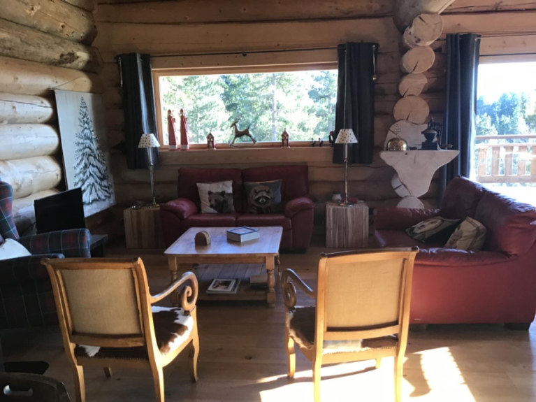 Our log cabin, completed in July 2021, has a surface area of 140 m2 on a plot of 460 m2 and is designed for 10 people. It is located 900 meters from the alpine ski slopes and a hiking trail at the foot of the chalet leads to the Nordic ski area.