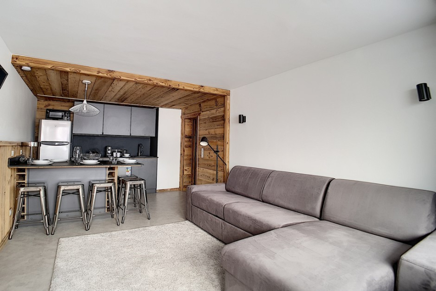 Apartment 2 rooms : 36 m² for 5 persons. located above the shopping mall, on the 2nd floor of a residence, close to the ski lifts and the ESF departure. The apartment has a large balcony facing South.