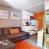 Living room equipped with a sofa and a television with DVD player.