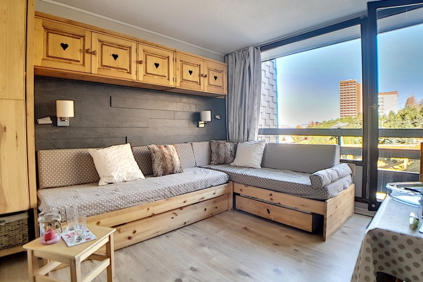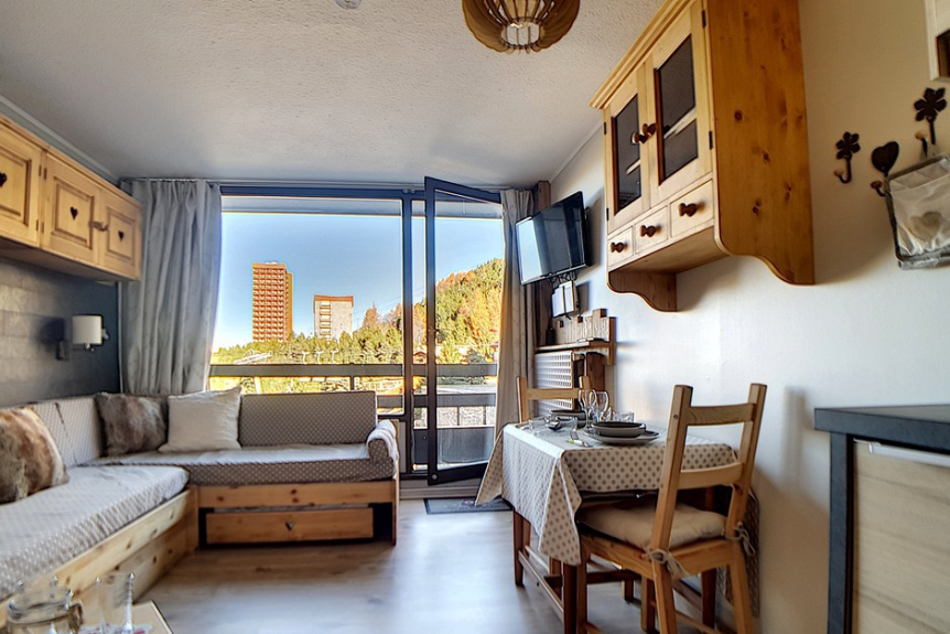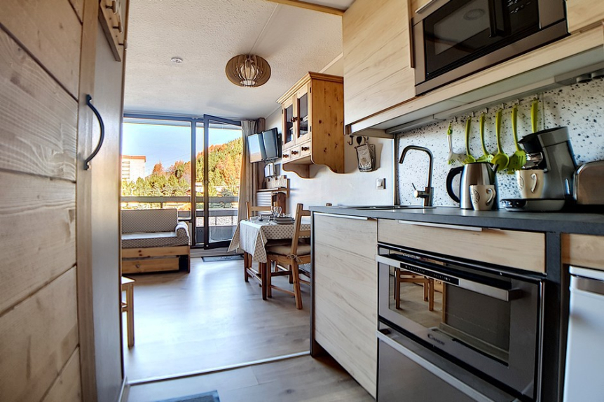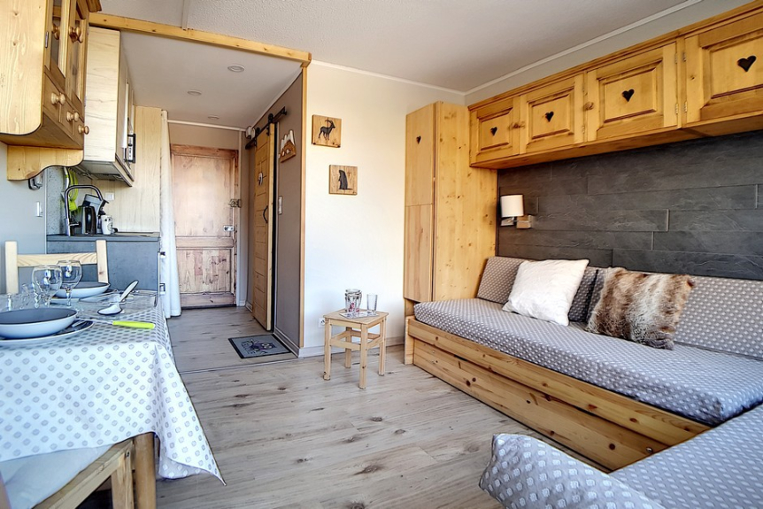 Fully renovated 17m² studio for 2 people with a small balcony facing north. Located on the 1st floor of the Chavière residence, giving you direct access to the slopes and the Croisette gallery.