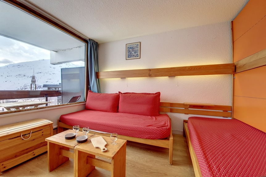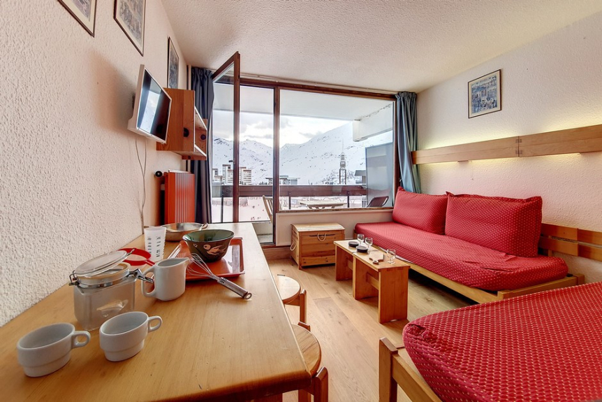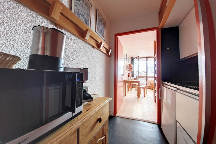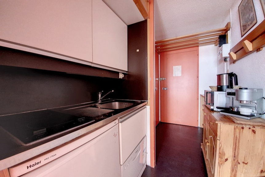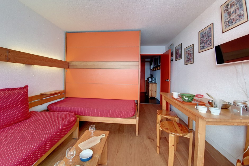 Studio of 24m² for 4 people, located on the 5th floor with elevator and has a south facing balcony (view on the slopes).