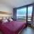 Built-in kitchen with 2 hotplates, microwave oven, refrigerator and dishwasher, coffee maker, toaster and kettle.