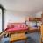 Kitchen, 2 electric plates, refrigerator, mini oven grill combi microwave, toaster, kettle and coffee maker.