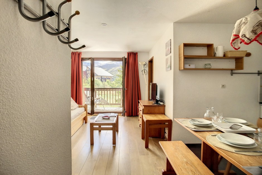 2 room apartment with cabin, 30 m² for 6 people. The apartment is located on the 1st floor with a large balcony facing south.