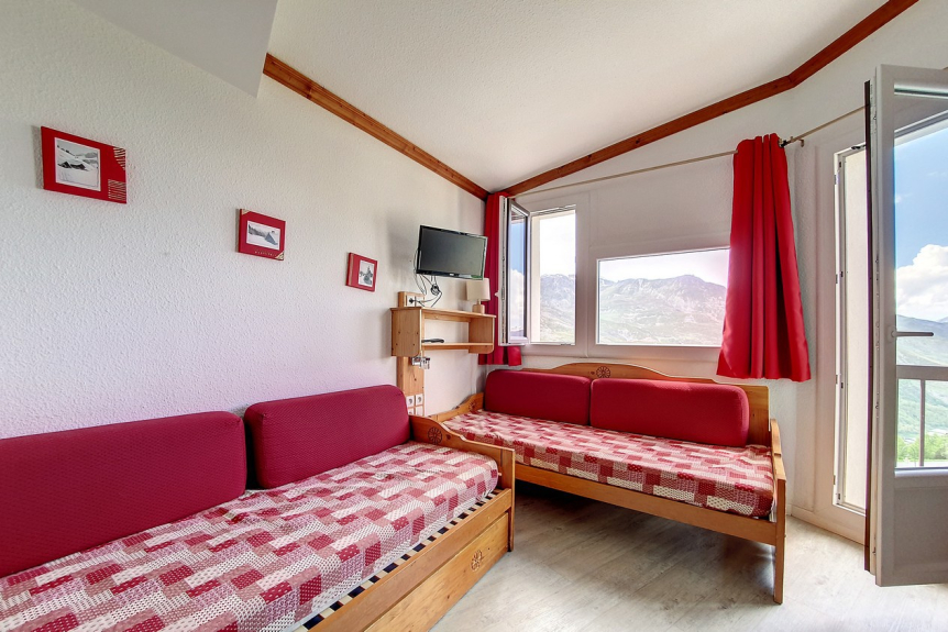 Living room with French window opening onto a balcony: 2 single beds (not suitable for a double bed). Equipped with a television.