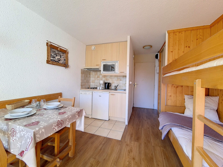 Studio of 20 m² for 3 persons. Located on the 7th floor, it has a balcony facing South. Entrance 1.