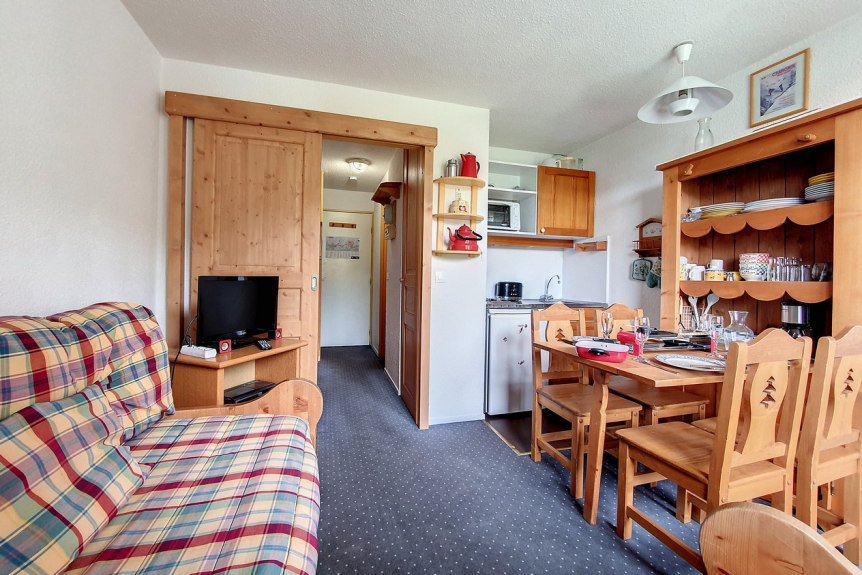 Studio with mountain corner of 18m² for 3 people, it is located on the 5th floor with elevator and has a balcony facing south-east.