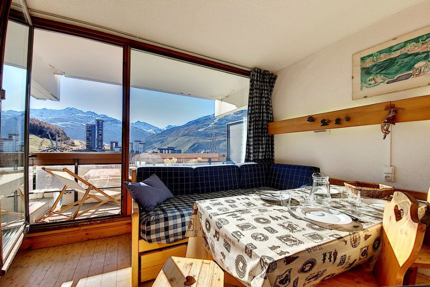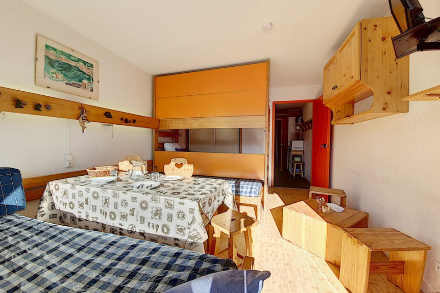 Studio of 24m² for 4 people, located on the 5th floor with elevator and has a south facing balcony (view on the slopes).