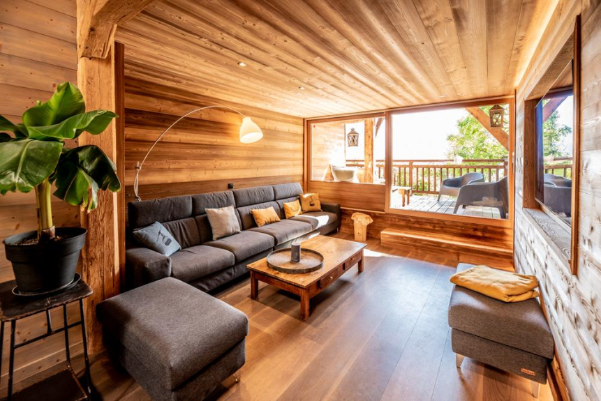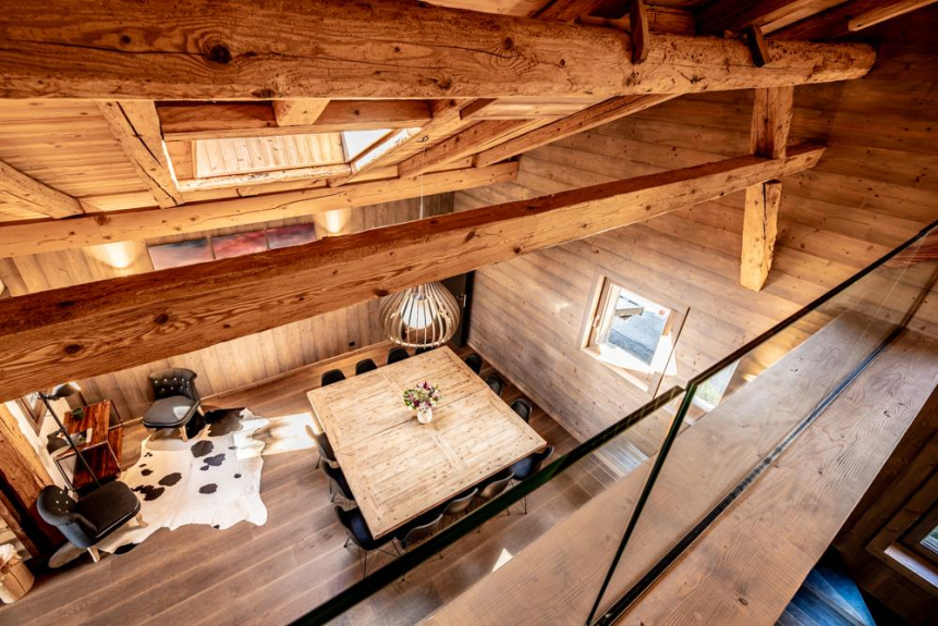 Located 2km above the village of Samoëns in an old Savoyard farmhouse, our duplex of 170 m2 (Carrez law) has been completely renovated in 2017 by an architect. Spacious, it can accommodate up to 14 people with 5 bedrooms with private bathrooms and three independent toilets. It is south-facing and its covered terrace will allow you to enjoy a panoramic view of the whole valley. A parking for 5 vehicles is available as well as a ski room. It is located at 5mn by car from the Grand Massif Express gondola parking.