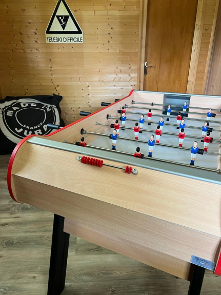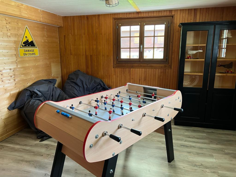 A large games room of 16 m2 with footstools, new René Pierre table soccer and many games for all ages.