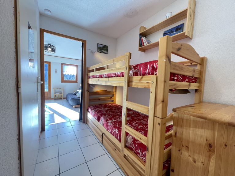 - Bedding : one bedroom with a double bed (140), mountain corner with two single bunk beds (2*90), living room with a sofa bed (140). Bedding equipped with comforters.