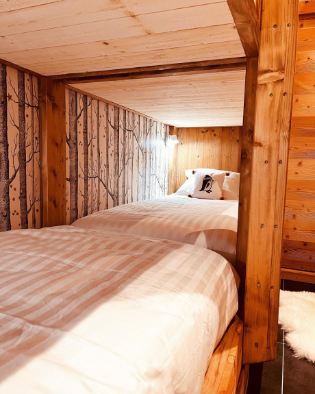 - The "Mountain" suite with TRECA high quality bedding 160 with bathroom (shower and sink), cupboards.