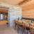 - An entrance leading to the living room and dining room with a mass stove and large wooden table,
