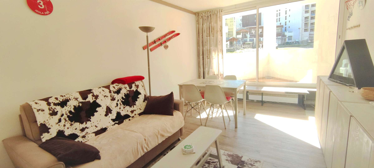 PVA2 2* Studio for 4 persons, located in a building in the heart of the resort in the "Front de Neige" complex (resort center), at the foot of the slopes, above the Galerie Marchande and close to the sports activities.
