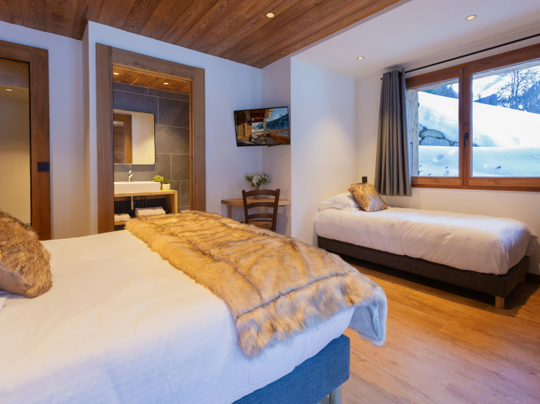 Nestled in the pretty Bouchet valley, it has magical views of the jagged peaks of the Aravis. A car will probably come in handy, although the ski shuttle stops nearby. This chalet is quite close to the road, so you may hear some traffic. The advantage is that you will have easy access to amenities and activities.