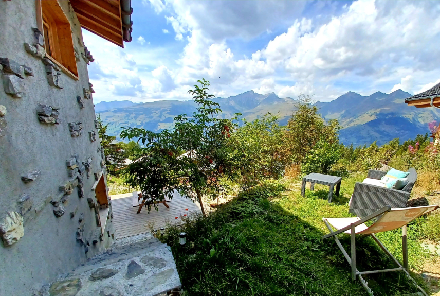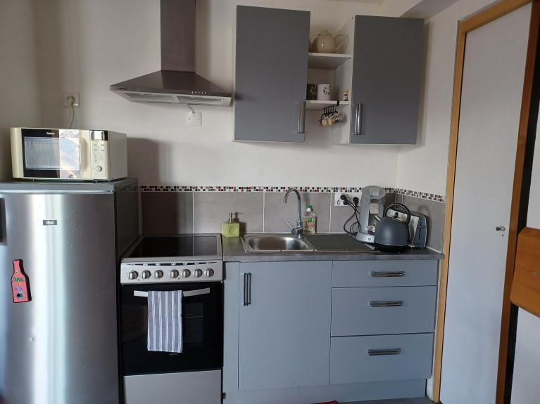 Charming, bright and quiet studio with a private terrace and barbecue area or relaxation area with a breathtaking view of the mountains and the valley.