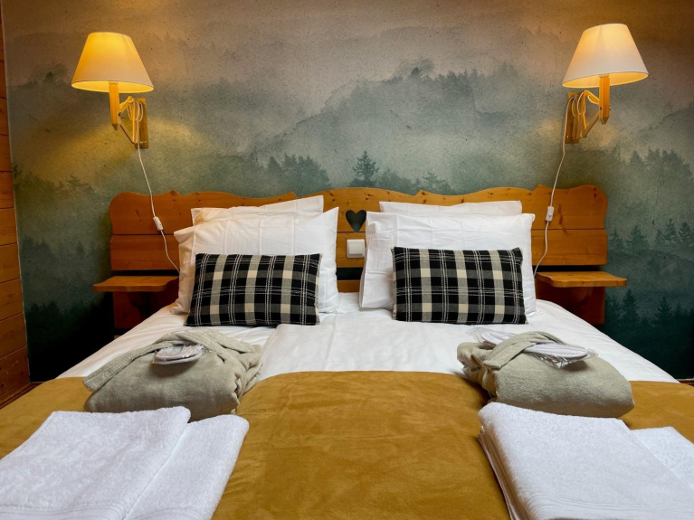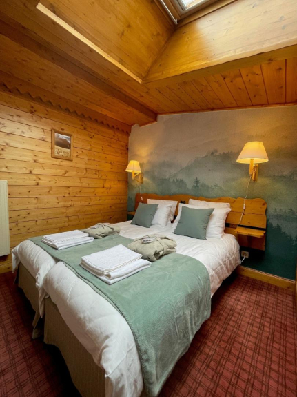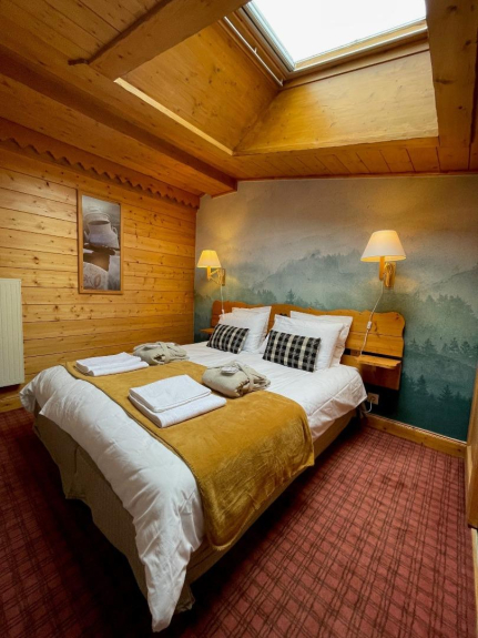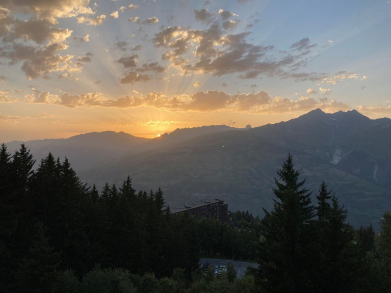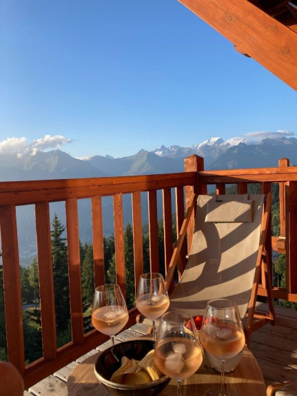The apartment, facing west, can accommodate between 6 and 8 people. It has a panoramic view on the mountains and the Mont-Blanc: memorable sunsets guaranteed!