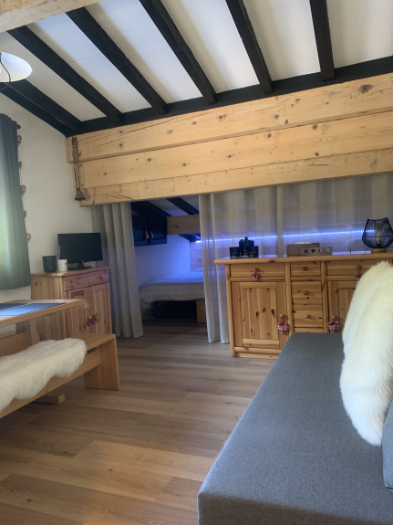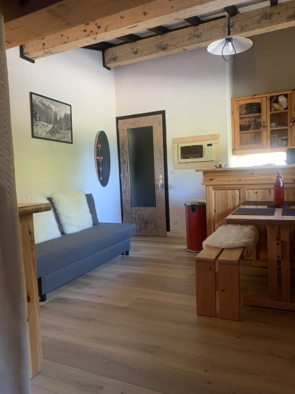Studio of 30 m2 for 4 persons at the foot of the slope of Lachat (blue slope) departure and return in ski possible at the foot of the residence. Located in front of the Mont Rond massif. Immediate proximity of shops. Quiet and preserved area.