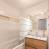 - A shower room with shower, washbasin with furniture, towel dryer