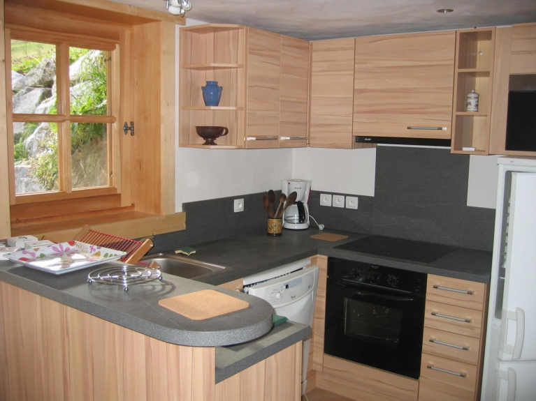 In an exceptional and quiet setting facing Mont Blanc at 1000m altitude between Saint Gervais and St Nicolas de Véroce, 3 km from the ski lifts and direct access to Paris by TGV and freeway, brand new luxury family apartment of about 50m², for 4 people (ideally for a couple and two children), located on the ground floor of a large new chalet with a wooden terrace facing south-east and a view of the Mont Blanc massif.