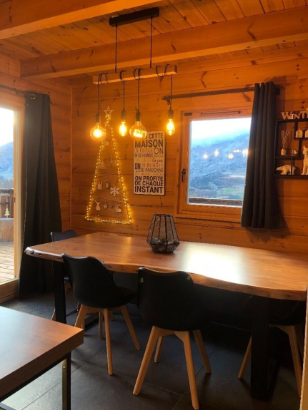 - a large corner terrace facing south and west, on the edge of the forest, with a splendid view of the Dévoluy mountains. Deckchair, outdoor dining area, swing, sledges... Ideal to recharge your batteries, enjoy the sun and the calm of nature. The children will have a great time in the snow field !