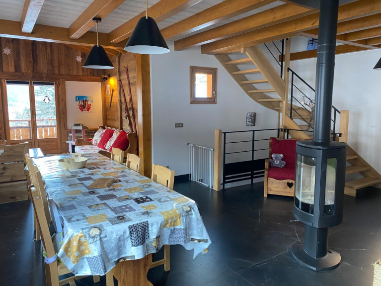 At the corner of the stove you can enjoy a view of the ski area, or enjoy a little mulled wine on the south facing terrace, while the children make a snowman in the garden.