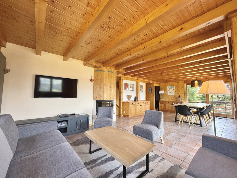 The chalet benefits from a good exposure and offers sumptuous views of the mountain ranges from Mont Charvin to the Aravis range.
