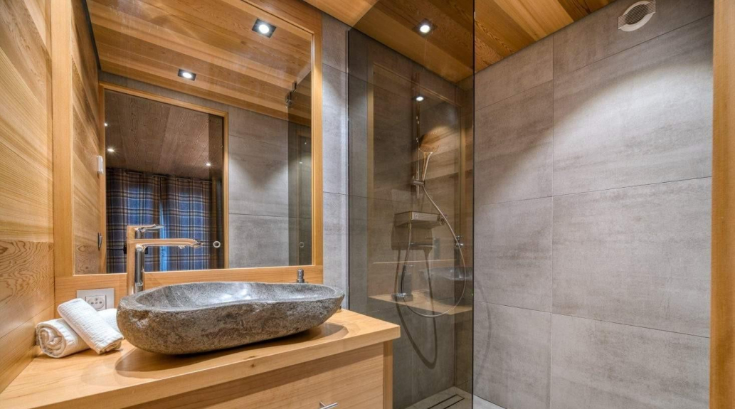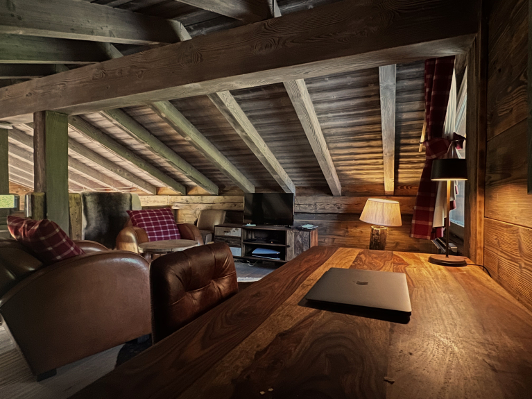The chalet opens on a large living room entirely dressed in natural wood. Warm and intimate with its elegant furniture, its carpets and cushions, its Nordic style decoration, it houses a living room with a library and a fireplace, a friendly dining room and a modern kitchen. Large bay windows offer you an unobstructed view of the Mont d'Arbois massif. While enjoying your breakfast, you will admire every morning the sunrise on the snowy mountains. In the afternoon, you will love to curl up with a plaid and a hot chocolate in the sofa while contemplating this breathtaking panorama.