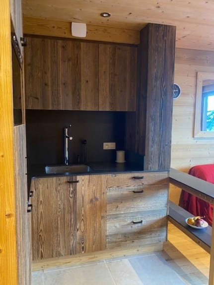 Fully equipped with dishwasher, electric hob, fridge with freezer, microwave oven, electric kettle and coffee maker, toaster, raclette and fondue machine, hair dryer, vacuum cleaner, television, board games, shoe rack (6 pairs), sledge and snow shovel.