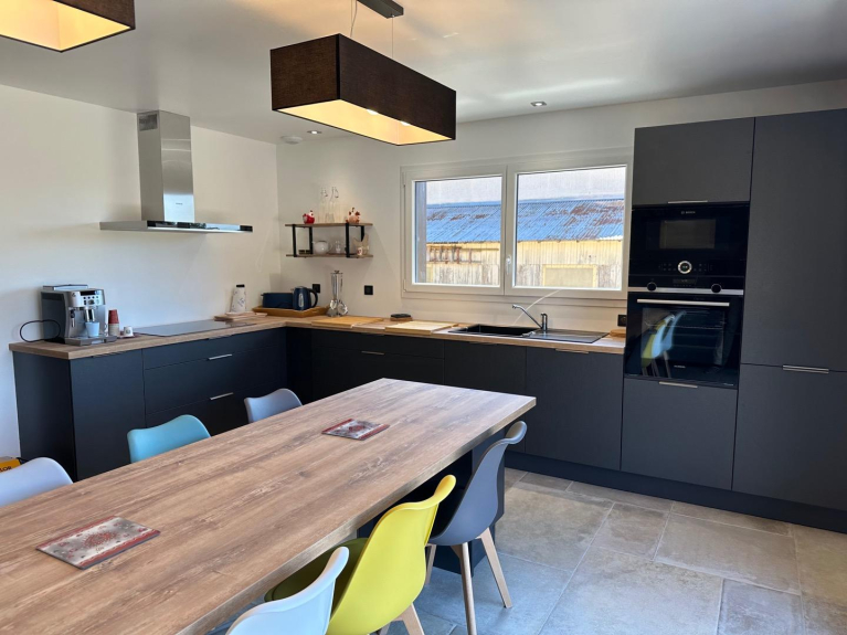 - fully equipped open kitchen (fridge/freezer, oven, induction cooker, microwave, coffee machine, toaster, kettle, fondue machine, pierrade, raclette machine)