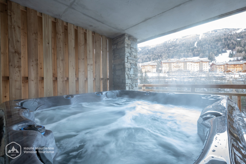 The residence is set back from the main road, in a quiet location, 200 meters on foot from the Vieux Moulin gondola lift (ski area, ESF) and 100 meters from the start of the free shuttle service to the village (shops, skating rink, swimming pool, etc.). The ESF is opposite the road and the river, and you need to walk or drive 350m around them (clear road).