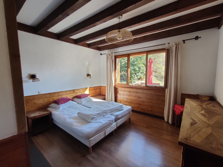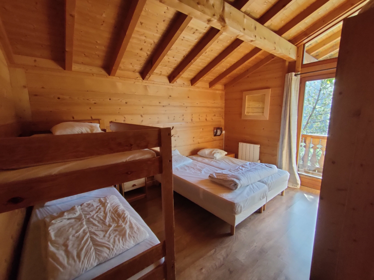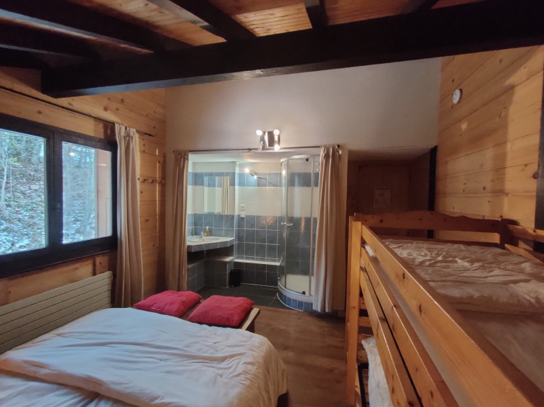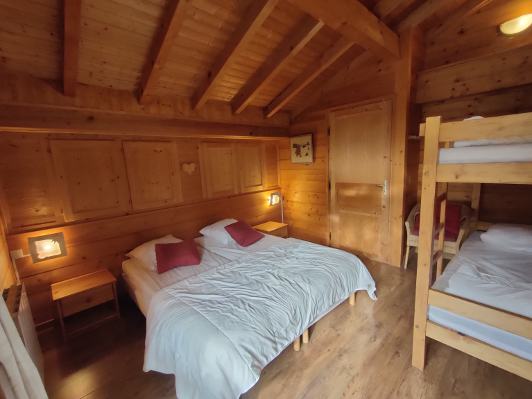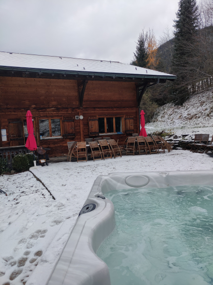 Bedrooms 7 large bedrooms from 15 to 25 m² including 4 with private bathroom and 2 mezzanines. All rooms are equipped with new bedding and thick duvets of quality. Possible dormitory on the floor. Bathrooms There are 6 bathrooms in the chalet; The first with a large bath and 2 sinks, four others with showers, the sixth is integrated into the wellness area. Wellness areaIt is the return of a good day of skiing or hiking in the mountains, that you will particularly appreciate the softness and tranquility: The Finnish sauna 5/6 places with its essential oils of Eucalyptus or Pine or the Jacuzzi placed outside for the extraordinary panorama and the benefits of the contrast of the hot tub at 38 ° in the snow.Salle of games, CarnotzetVous will prolong your evenings around the American billiard or Babyfoot Bonzini, near the fireplace ... Movie RoomHigh-tech hardware for the 300w audio video tuner amp connect to a set of 8 surround speakers and a subwoofer subwoofer. • large screen 2.20 x 3.00 m • sofas, benches and cushions • many DVDs The installation allows the connection of all types of game consoles (Wii, Xbox, PS ...) and your laptop.
