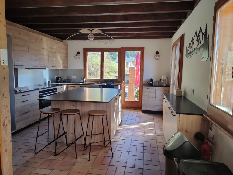 You will find at your disposal: 1 big refrigerator, a multifunction oven, a ceramic hob 4 burners, a microwave, a dishwasher, a sink, a coffee maker, a toaster and press citrus, and traditional appliances meals festive Savoyard: raclette equipment, fondue set, pierrade appliance.