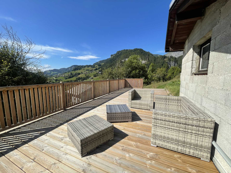 Located on the outskirts of Flumet village, this fully renovated chalet faces the Val d'Arly mountains,