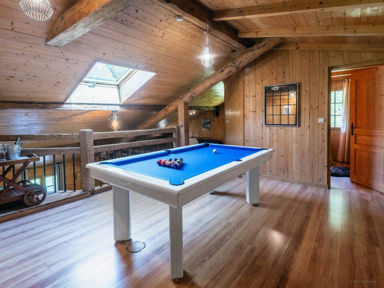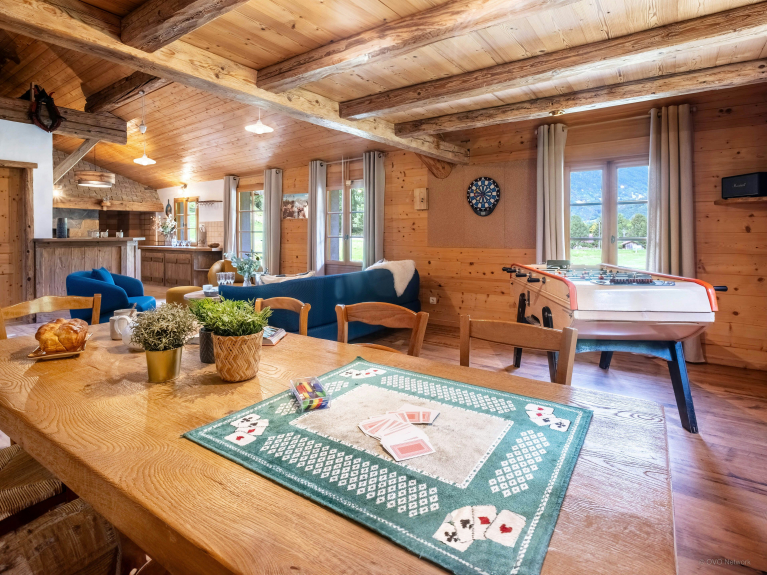 Indoors, the comfortable spaces around the living room offer unforgettable moments of conviviality, in the games room, around the bar, in the reading corner on the mezzanine, or in the TV room.