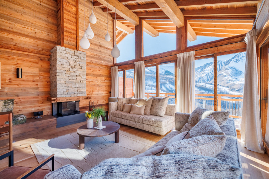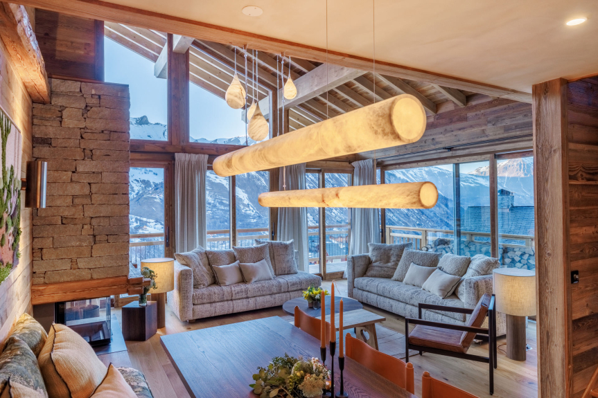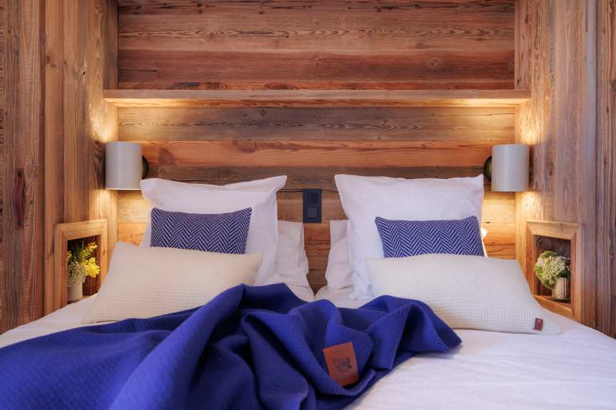 The finest mountain materials (old wood, Arpin woollens) combine with modern amenities to welcome you into a cocoon of well-being.