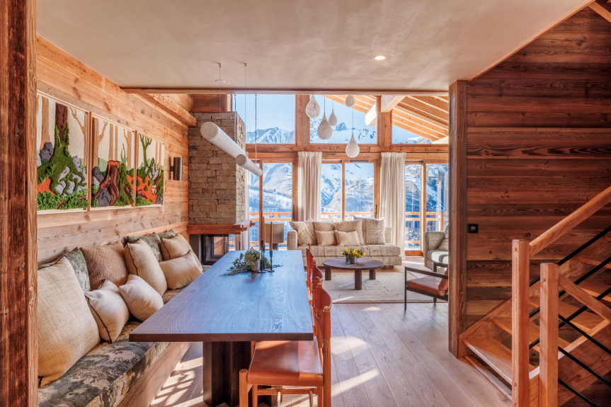 Bathed in light, with dazzling views of the peaks around Saint Martin de Belleville, Chalet ALPEA, in the exclusive hamlet of Caseblanche, is synonymous with art de vivre.