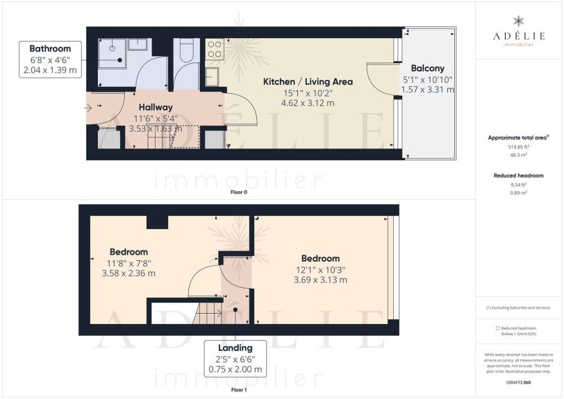 Exposed South with balcony.