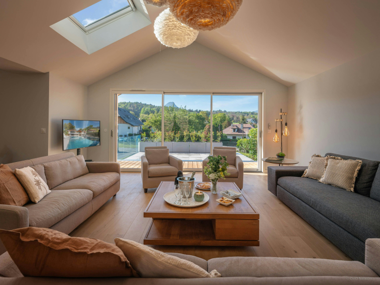 Its privileged location offers easy access to Lake Annecy and its golf course, the charming village of Talloires, and the prodigious Roc de Chère nature reserve. The historic center of Annecy, just 11km away, can be reached by bike along the lakeshore.