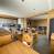 MAIN ROOM: Fitted kitchen opening onto living room.