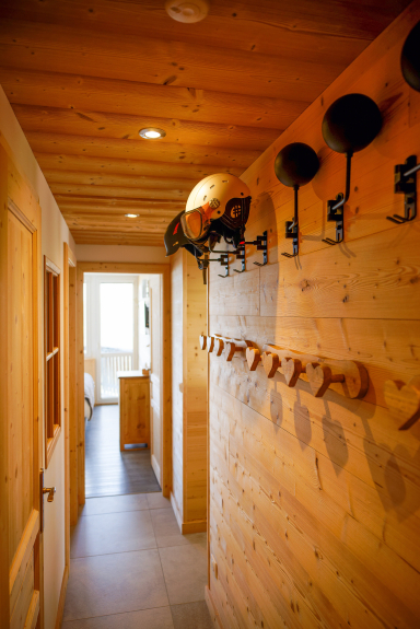 ENTRANCE HALL: wall-mounted coat hooks, electric shoe rack and dryer, wall-mounted headset holders, wall-mounted mirror.