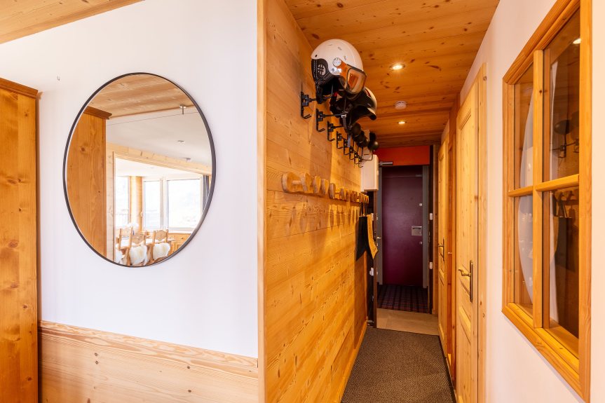 ENTRANCE HALL: wall-mounted coat hooks, electric shoe rack and dryer, wall-mounted headset holders, wall-mounted mirror.