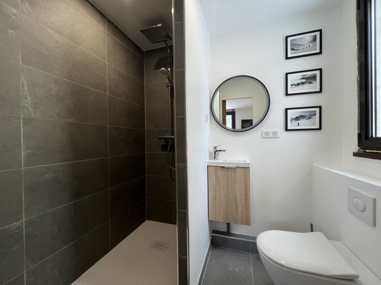 Bedroom 1: double bed (160cm), shower room and WC