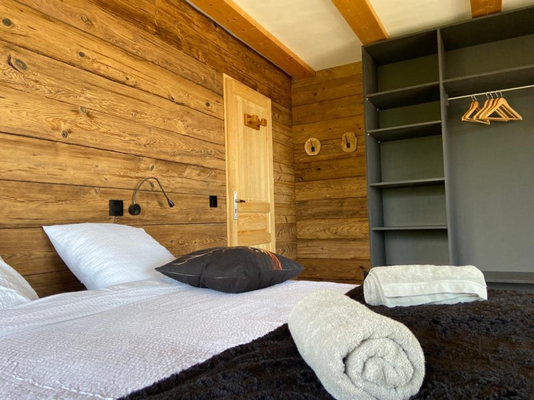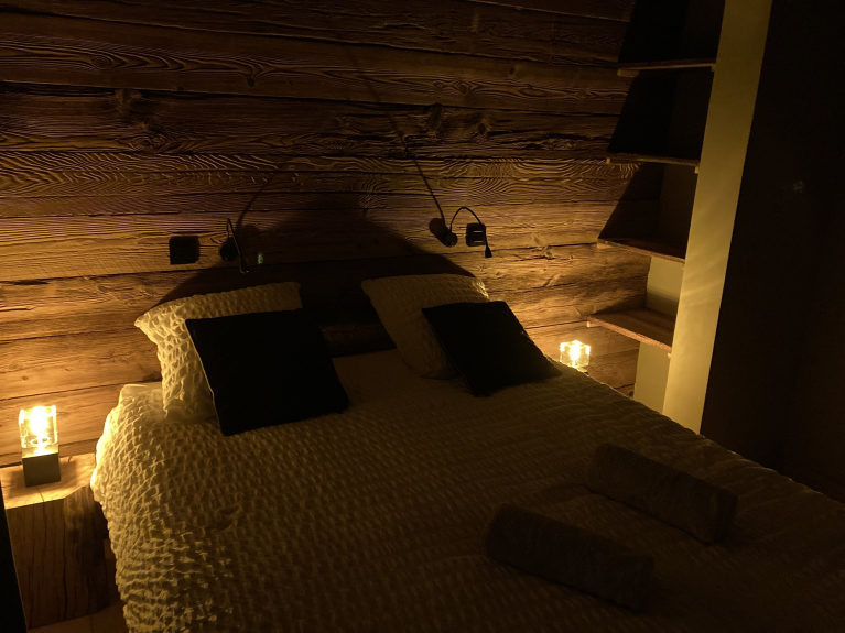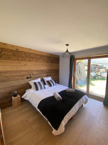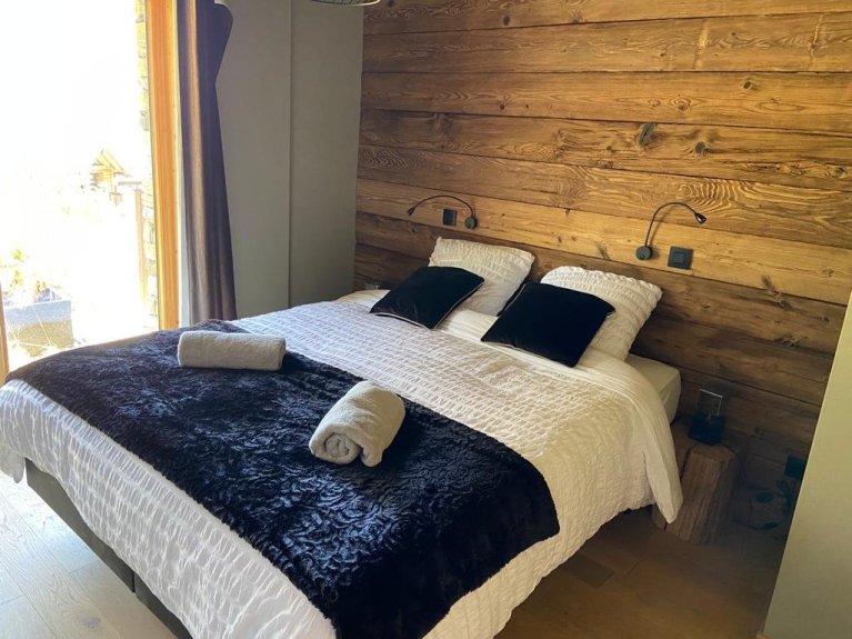 -1 double bedroom with en-suite bathroom (shower, 2 sinks and toilet), television and private terrace facing south-west with breathtaking views of the Beaufortin massif.