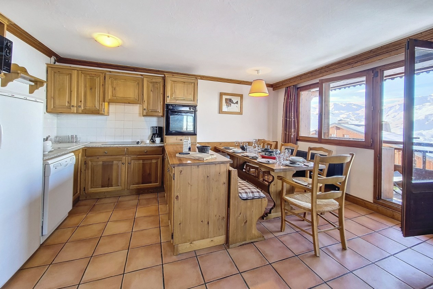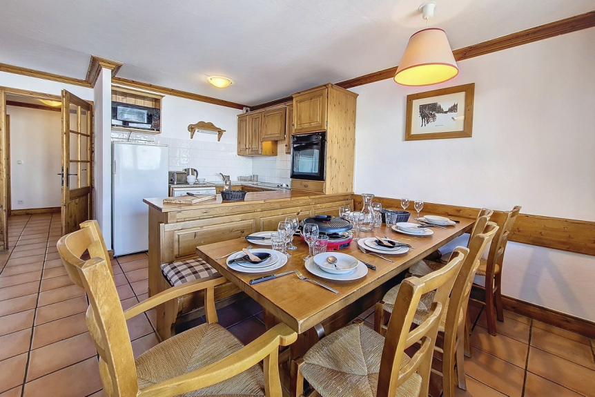 Open kitchen equipped with 4 ceramic hobs, hood, traditional oven, microwave, dishwasher, fridge with freezer, toaster, coffee maker and kettle. The apartment is equipped with a raclette machine, a fondue machine and a rice cooker.