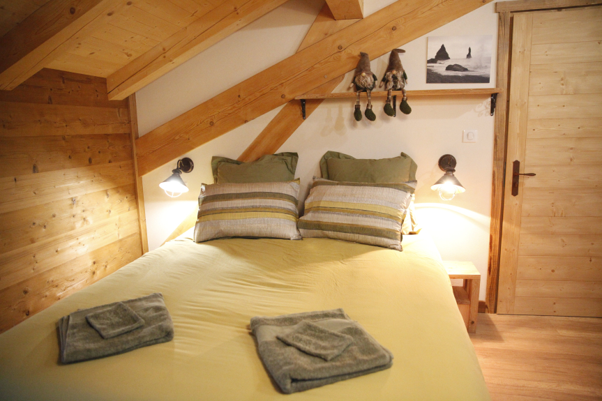 Chalet La Trafolée, located at an altitude of 1500m in Manigod in the Aravis mountains, is a 4-star, self-contained chalet for 8 adults. This authentic, comfortable chalet is available to rent by the week in its entirety. Ideal for an active vacation or to recharge your batteries, enjoy this unique location with an incredible view of the Aravis mountains as a couple, a family or with friends. In winter, you're right on the slopes of Manigod and La Clusaz. Set off from the chalet on skis, snowboard or snowshoes, or go cross-country skiing on the magnificent Plateau de Beauregard, 3.5km away. The chalet is isolated in winter, but you're just 80m from a ski lift, and 200m from the heart of Manigod resort and its shops. In summer, you're in the heart of the mountain pastures, lulled by the tinkling bells of the family's Abondance cows. Trail, hike or mountain bike from the chalet. After the effort, enjoy the resort's supervised swimming pool, just 200m from the chalet, open in July and August. A 20-year renovation of this family-run alpine chalet has just been completed, so discover now this ancestral place with its cosy interior.