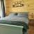 The chalet is spread over two floors. Downstairs, there are two bedrooms and a bathroom. The master bedroom features a comfortable double bed with space for a baby cot. The second bedroom has a sturdy bunk bed, suitable for both children and adults. The bathroom includes a shower, toilet, and a sink with mirror.