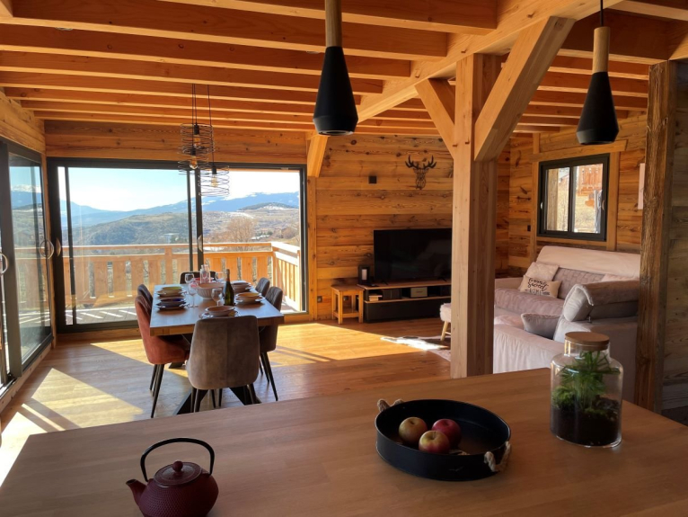 Welcome to our home, a perfect fusion of contemporary elegance and rustic charm. Built in 2023, this 10-person, 150 m2 chalet offers an unforgettable holiday experience, where comfort and technology blend harmoniously with the warm ambience of wood. In the heart of the Cerdagne region, our mountain chalet stands out for its unique character, blending perfectly with the natural environment that surrounds it. Don't miss this opportunity to enjoy a unique experience in a spectacular natural setting. Enter a world where warmth is not simply a question of temperature, but a sensation that greets you from the moment you walk through our door. Old wood, with its rich shades and varied textures, creates a warm, soothing ambience. You'll immediately be enveloped in a comforting atmosphere that will make you feel at home, far from home.